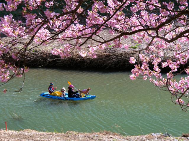 受付→着替え・準備→漕ぎ方のレクチャー→いざ乗船 青野川から漕ぎ出します